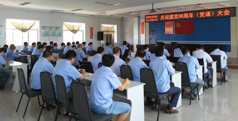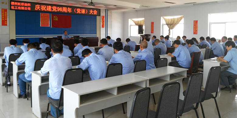 德州虹橋染料化工有限公司三個支部的全體黨員于2017年7月8日上午9點(diǎn)在公司辦公樓4樓黨員活動室進(jìn)行了“慶祝建黨96周年(黨課)大會”學(xué)習(xí)。這是今年以來3個支部全體黨員第一次集體學(xué)習(xí)。黨課開始前,全體黨員站在黨旗下,莊嚴(yán)的重溫入黨誓詞(視頻播放)。本次黨課學(xué)習(xí),由公司董事長黨總書記吳高樓主持,在紀(jì)念我黨建黨96周年之際,公司黨總支委員總經(jīng)理申書信同志以“化工行業(yè)安全”為主題,講了德州虹橋染料化工有限公司當(dāng)前面臨的生產(chǎn)安全環(huán)境和實際困難,用近期周邊其他化工單位發(fā)生的安全事故,聲情并茂,娓娓道來,為黨員們敲響安全的警鐘。黨員們對安全生產(chǎn)的認(rèn)識又提高了一個層次。吳總要求黨員們要積極發(fā)揮黨員的先鋒模范作用,以實際行動為榜樣,帶動德州虹橋所有職工牢記安全生產(chǎn),人人有責(zé)。。