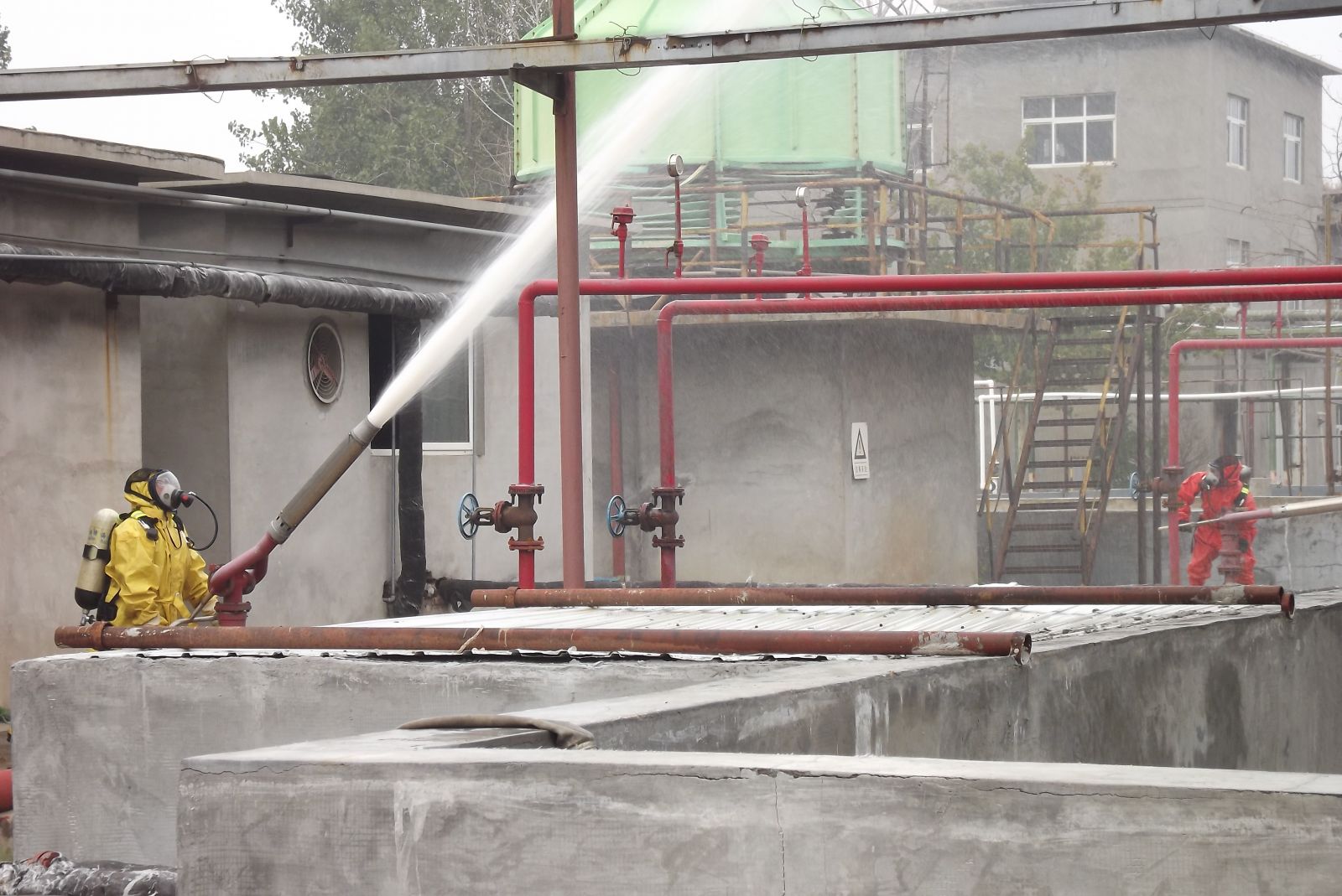德州虹橋染料化工有限公司生產(chǎn)部為增強公司各部門生產(chǎn)防范意識和提高應(yīng)急處置能力,強化應(yīng)對各類突發(fā)事故的處理技能,提高職工快速反應(yīng)能力以及各部門協(xié)同作戰(zhàn)能力,確保在發(fā)生突發(fā)事故時,能夠有效組織,快速反應(yīng),臨危不亂,最大限度地減少危害事故的發(fā)生。2019年10月11日上午組織公司各部門員工在硝基苯儲罐區(qū)進行了應(yīng)急消防演練。