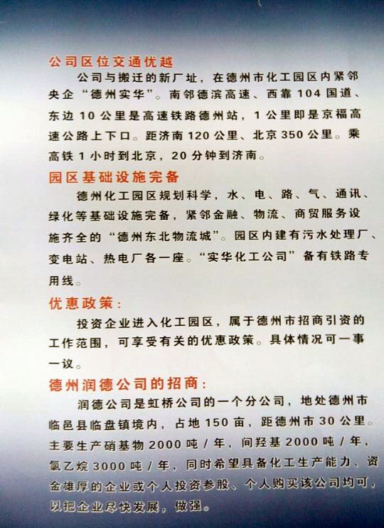 德州虹橋染料化工有限公司招商引資說明
